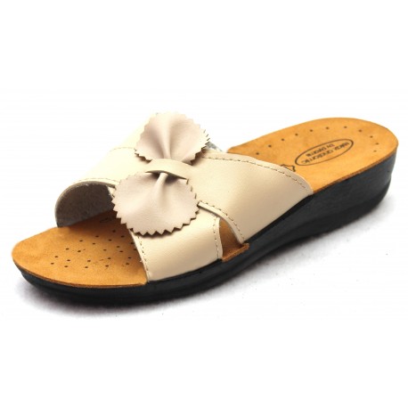 Κλασσική χιαστή παντόφλα, με δερμάτινο ανατομικό πάτο, πέλμα p.u. injection 4cm ύψος, με διακοσμητικό φιόγκο.