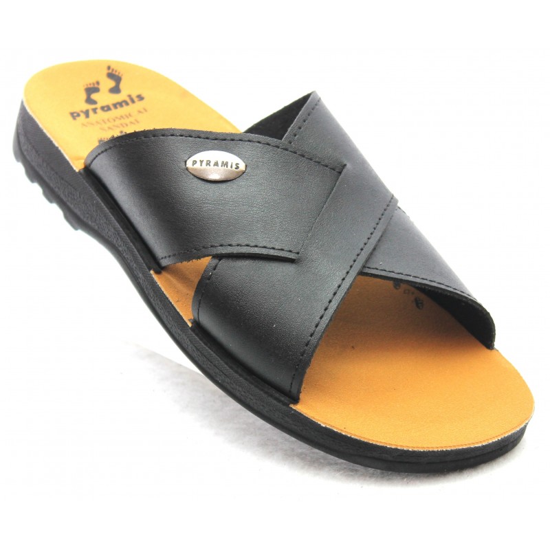 Κλασσική παντόφλα εξ ολοκλήρου δέρμα χιαστή και ανατομικό πάτο, πέλμα p.u. injection 3cm ύψος